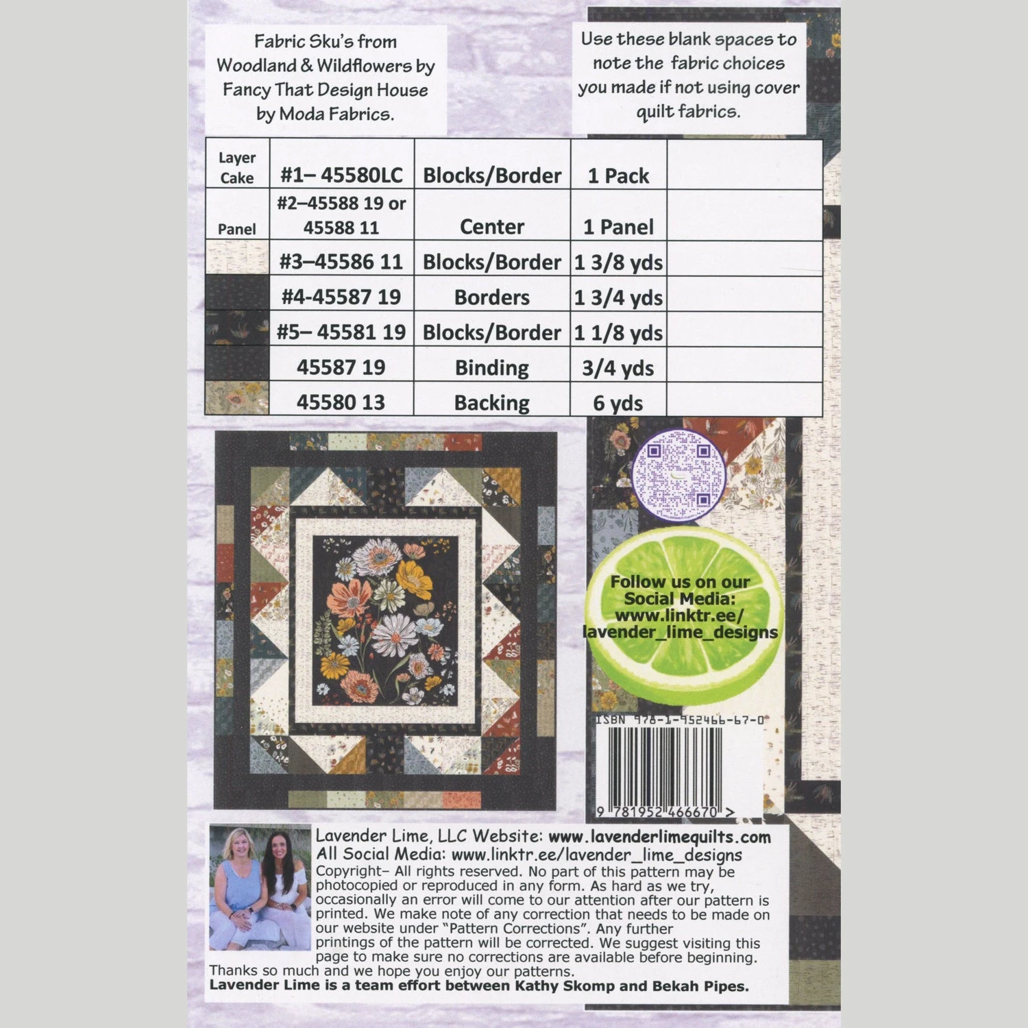 A panel provides a quick jumpstart to this quilt! Add a layer cake and some additional yardage, and you’ll have what it takes to make a beautiful quilt. Pattern, by Lavender Lime, has piecing instructions for the 79 1/2″ x 88 1/2″ quilt featuring the Woodland & Wildflower fabric collection from Moda Fabrics.