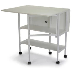 - Quilt leaf stored on the back of the cabinet expands your workspace to prevent large quilts from pulling and ending up on the floor