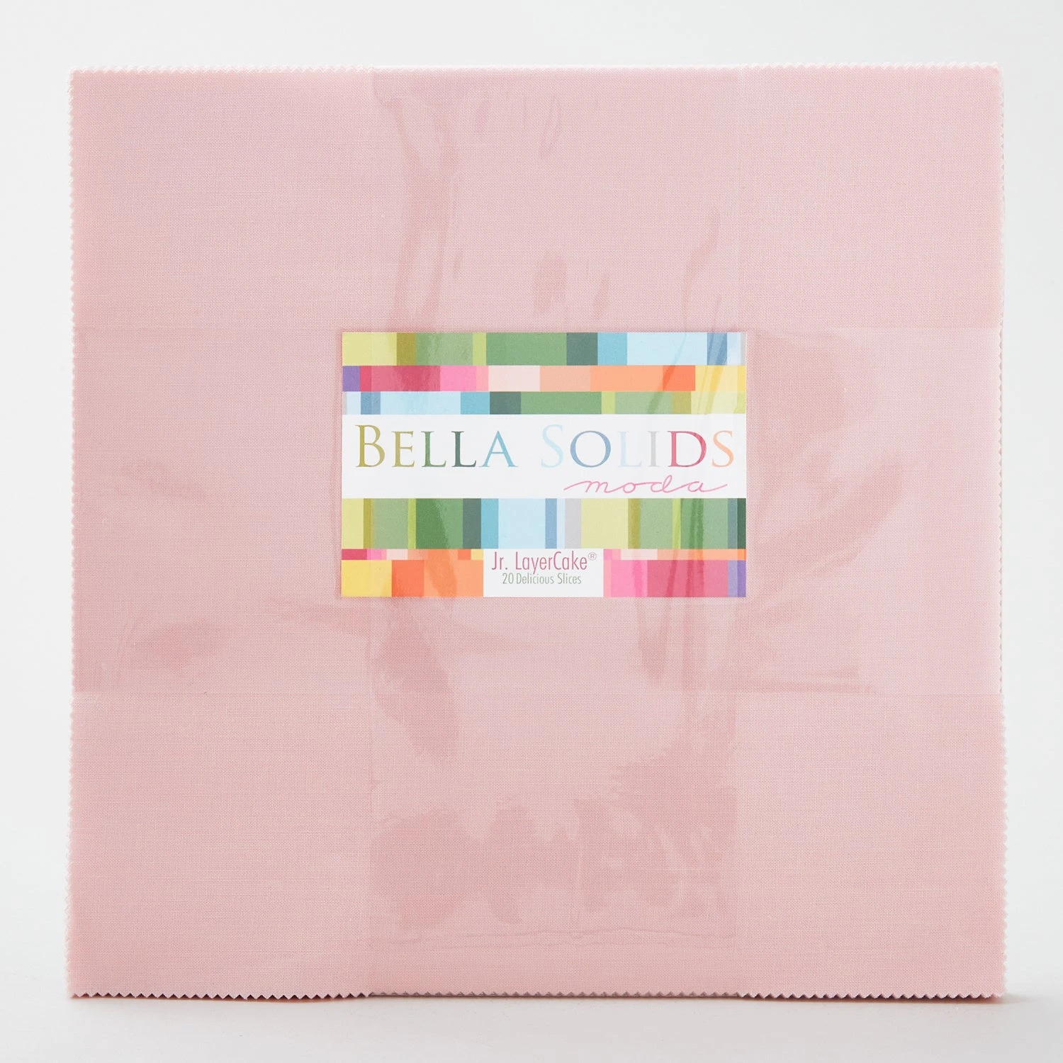Junior layer cake of Bella solid pink 10” squares. Solids are fantastic because of the balance they bring to quilts! If you need to balance out your project, consider Bella solids from Moda Fabrics! When it comes to Bella, you’ll always find the color you need, whether it’s sangria pink or lemon yellow.