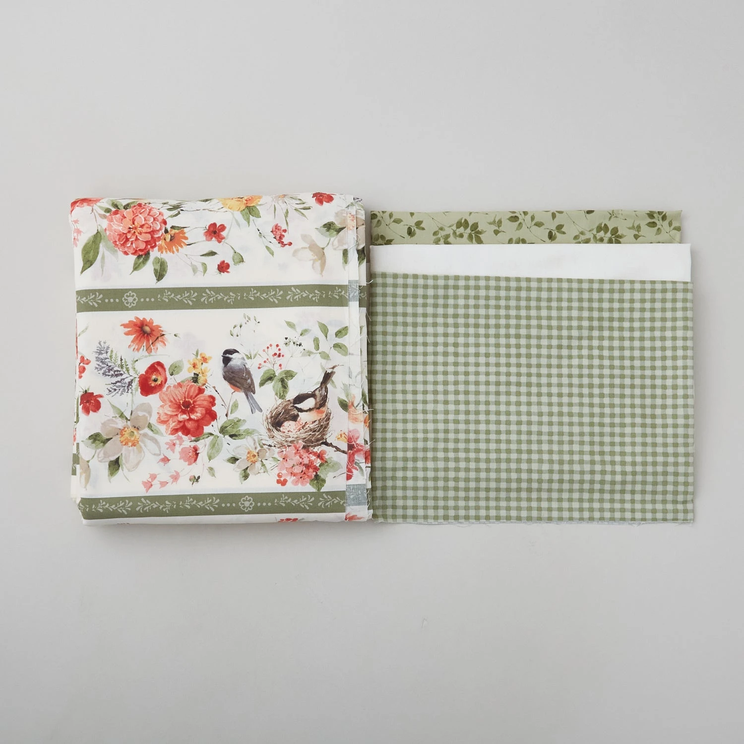 5 yards of backing required. We suggest Blessed By Nature – Florals Cream Yardage.