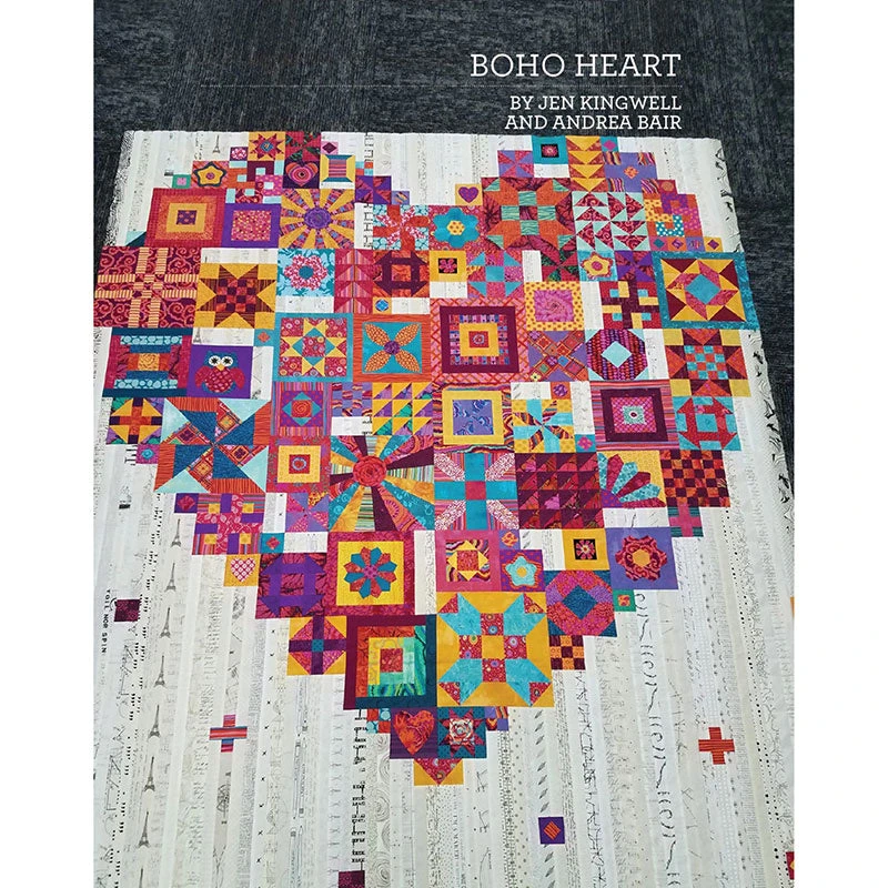 If you’re a free spirit at heart, the fun and eclectic Boho Heart is for you! This pattern booklet from Jen KIngwell Designs includes instructions for making a 68” x 80” quilt by piecing various sizes of blocks. It is a fantastic way to use scraps and fat sixteenths! Recommended for intermediate to advanced quilters.