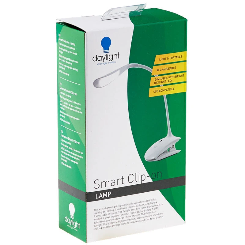 This modern, clip-on portable lamp is a great companion for crafting or reading. It can easily clip onto a book, needlework frame, table or laptop. The flexible arm directs the light where you need it most. The daylight LED light delivers high contrast, accurate color matching, low heat and the flexibility that you demand. Easy to pack up, take with you, set up and use wherever, whenever and however you need.