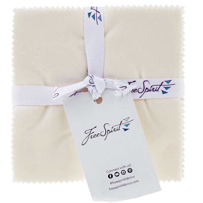 Charm pack of off-white solid fabric. Get all the essential colors with Designer Essential Solids by Tula Pink from Free Spirit Fabrics! Tula Pink’s talent for color extends beyond her gorgeous print collections. Just take a look at these striking solids and see for yourself! These whimsical colors are perfect for any project.