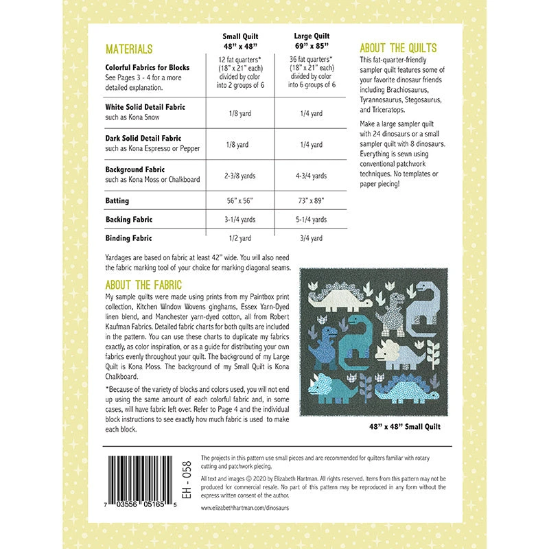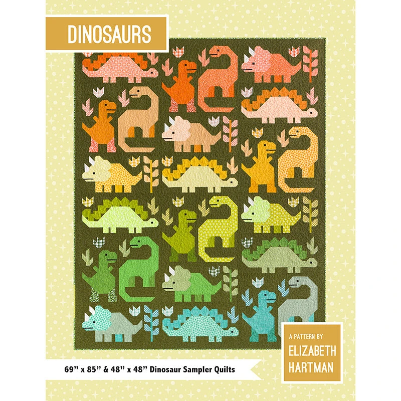 Well, take a look at who just woke up from their prehistoric nap. Dinosaurs are back and they’re ready to party! This fabulous quilt from Elizabeth Hartman is at the Tricera-top of our list and it’s so fun to stitch together. Dinosaurs is a patchwork sampler pattern using Brachiosaurus, Stegosaurus, Tyrannosaurus, and Triceratops blocks made using conventional patchwork techniques. No templates or paper piecing! The pattern has easy-to-follow instructions for two quilt sizes.