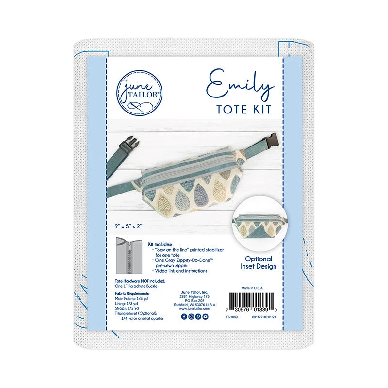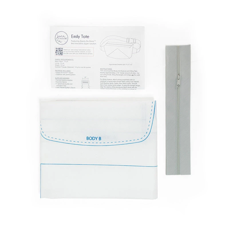 You’ll have this stylish tote completed faster than you can say, “Zippity-do-done”! The Emily Tote is similar to a fanny pack in terms of design, accessibility, and convenience, so if this sounds like a must-have accessory, let’s start sewing! Kit includes “sew on the line” printed stabilizer for one tote, one gray Zippity-Do-Done pre-sewn zipper, video link and instructions. Fabric and tote hardware NOT included, you’ll need one 1″ Parachute Buckle.
