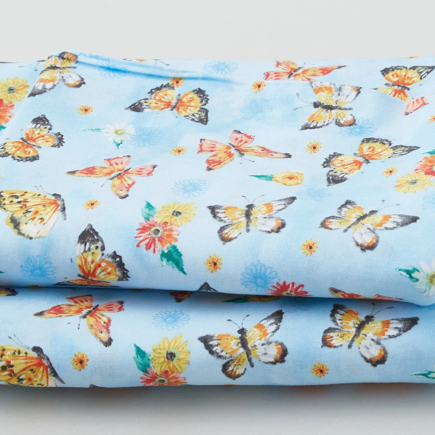 A 3-yard cut of colorful butterflies and flowers tossed on a blue background. Butterflies, birds, bees, and dragonflies. Fanciful Flight from Wilmington Prints has all these winged creatures, as well as lots of flowers. Fly over to your sewing machine and start a project using these pretty prints.