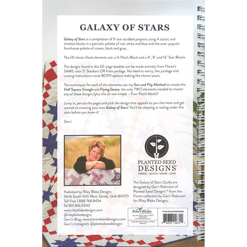 The sky’s the limit! Choose your next gorgeous quilt project from the Galaxy of Stars Quilt Booklet by Gerri Robinson of Planted Seed Designs. This compilation of nine star-studded projects in red, white, and blue will have you feeling patriotic. These patterns are designed to use only 5″ stackers for easy assembly!