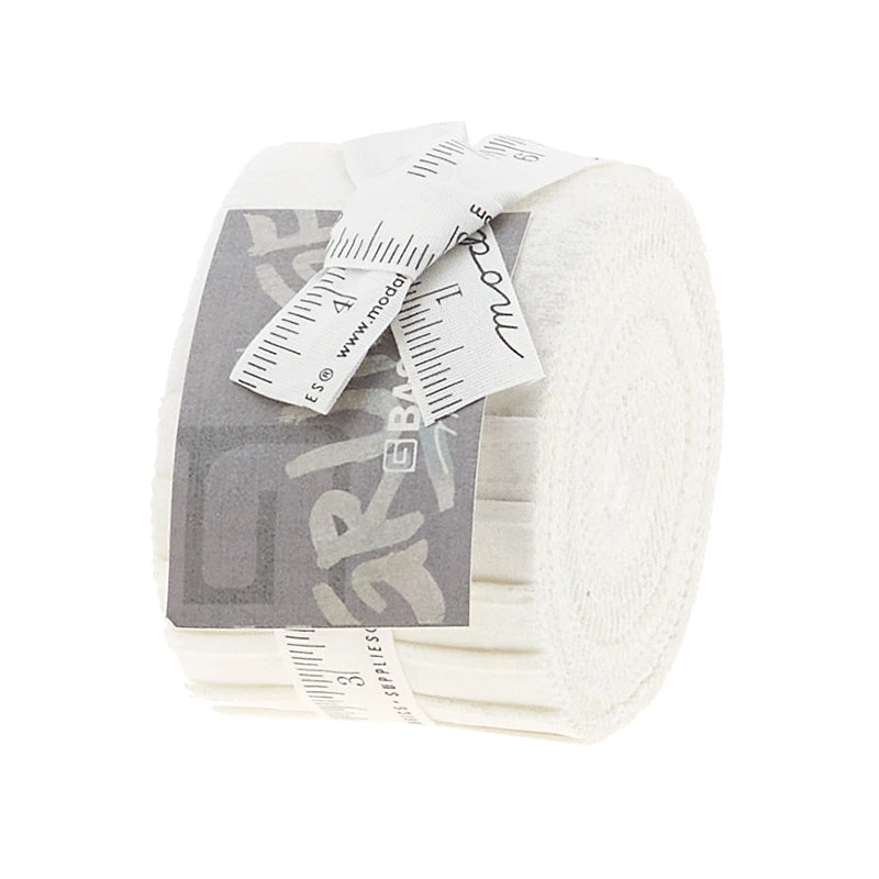 A junior jelly roll of identical white strips. Add a pop of texture to your next quilt! Grunge by BasicGrey for Moda are tone-on-tone, textured basics that add incredible depth and interest to any project. Pick up your favorites and get lost in a world of rich color.