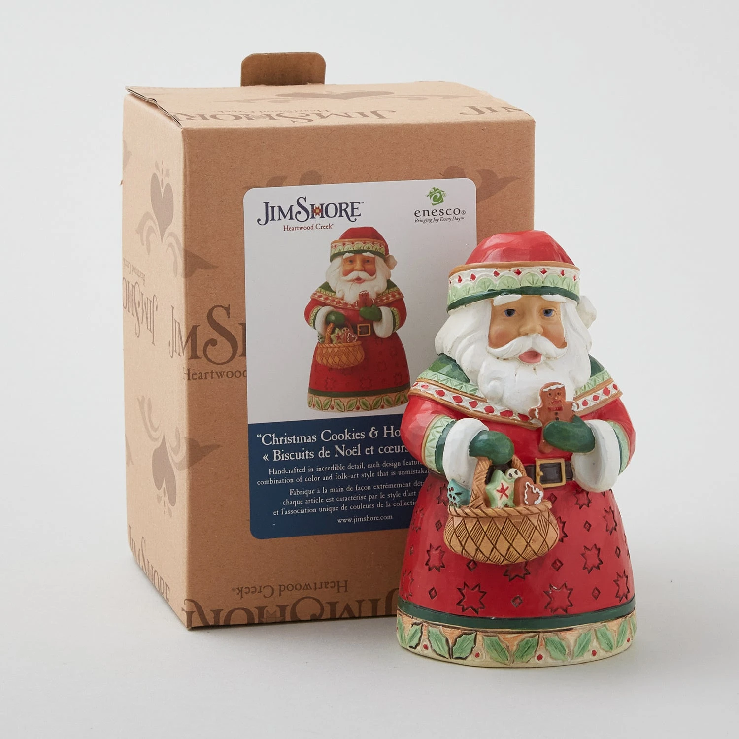 Santa is loaded with a basketful of Christmas cookies! This stone resin figurine is hand-painted with rich detail, right down to the icing on the gingerbread man! The Jim Shore Heartwood Creek figurine will look great on your mantel.