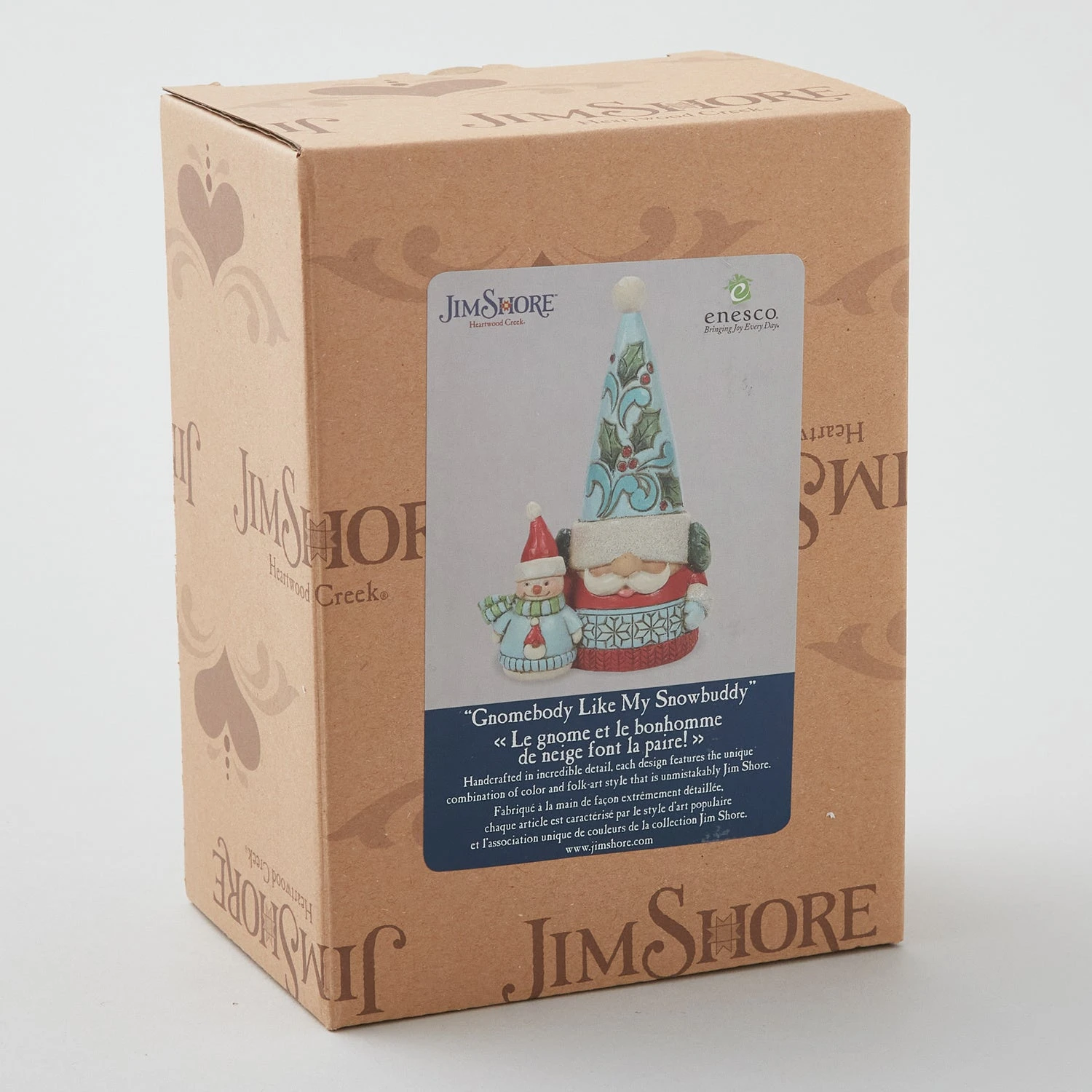 This adorable Jim Shore Santa gnome has his snowman sidekick with him! The stone resin figurine is hand-painted in Scandinavian folk art style. The band around the gnome’s hat even has glittery “snow.” 5.12″ tall.