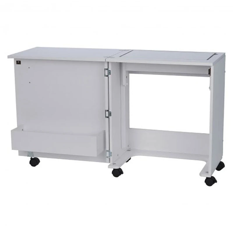 Enjoy timeless style and comfort while sewing with the Judy Cabinet by Arrow! This handy sewing cabinet is ergonomic and folds up for compact storage, simply pull open the white laminate cabinet to reveal all 50-3/4” of workspace on top with a cubby for storing notions inside. It features a three-position airlift, capable of holding machines up to 55 pounds, this is a cabinet that will work with you. The Judy Cabinet allows you to sit closer to the machine with ample room in front of the lift, which means better posture and less hunching! Sew comfortable, sew stylish with the Judy!