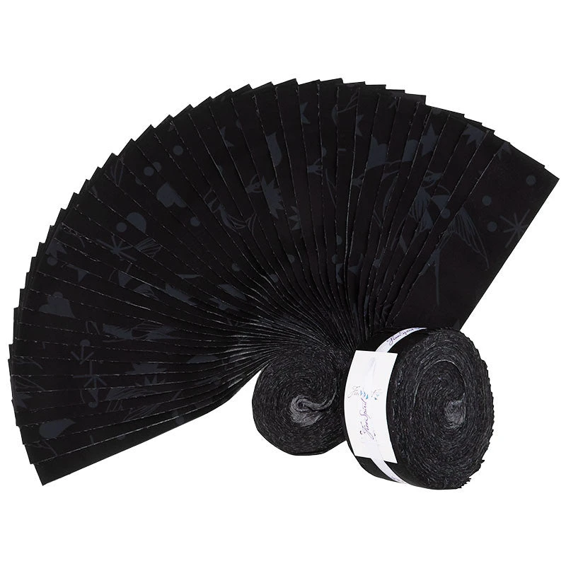 Black 2.5″ strips of whimsical birds, hearts, stars, and more!