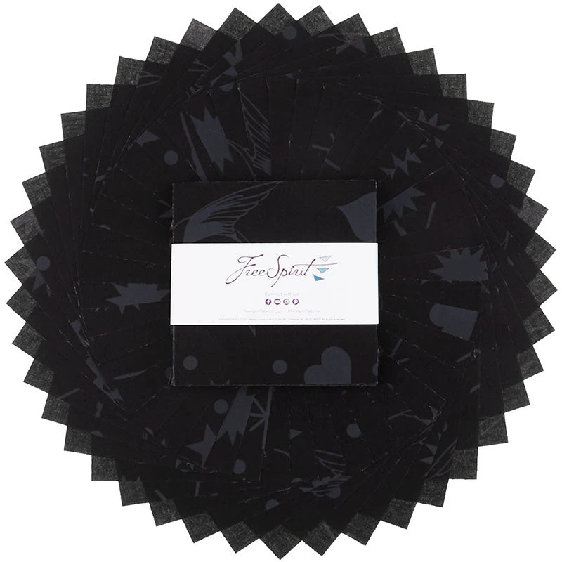 Black 5″ squares of whimsical birds, hearts, stars, and more!