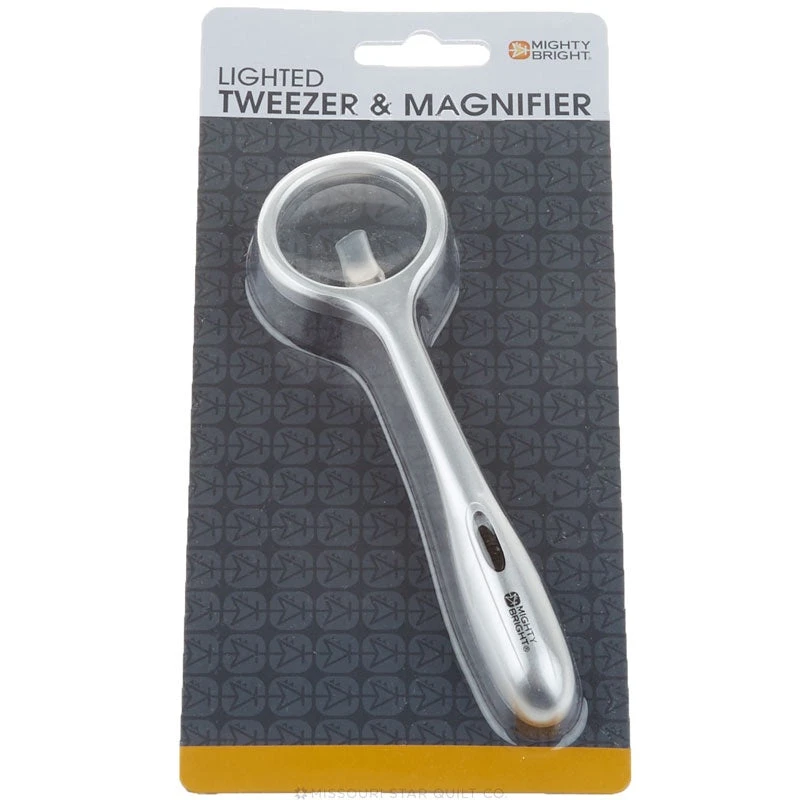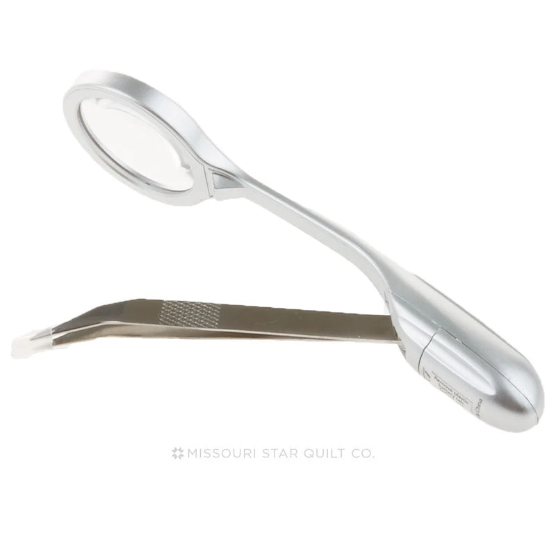 Be kind to your eyes! Bright white, energy-efficient LED light that lasts 100,000 hours. Has a 1.25″-diameter lens with 4x magnification. Ergonomic hands with 5.5″ long metal tweezers. Perfect for beading and pulling threads. Powered by three LR44 batteries included.