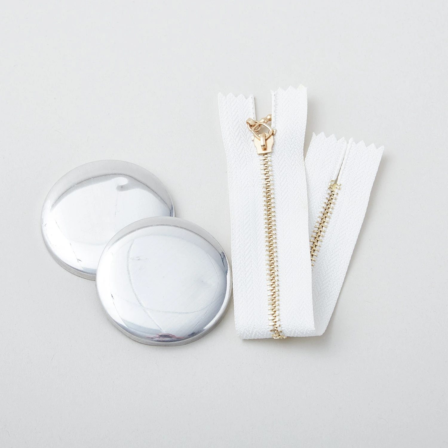 You’ll love this sweet sewing treat! This kit includes the hardware needed to sew one Mini Macaron Pouch, an adorable zippered cookie-shaped container designed by Zakka Workshop. Perfect for storing jewelry, coins and more, this clever accessory makes a fun gift! Kit includes two macaroon discs and one 6″ white zipper. You supply the fabrics of your choice. Extra discs and zippers available.