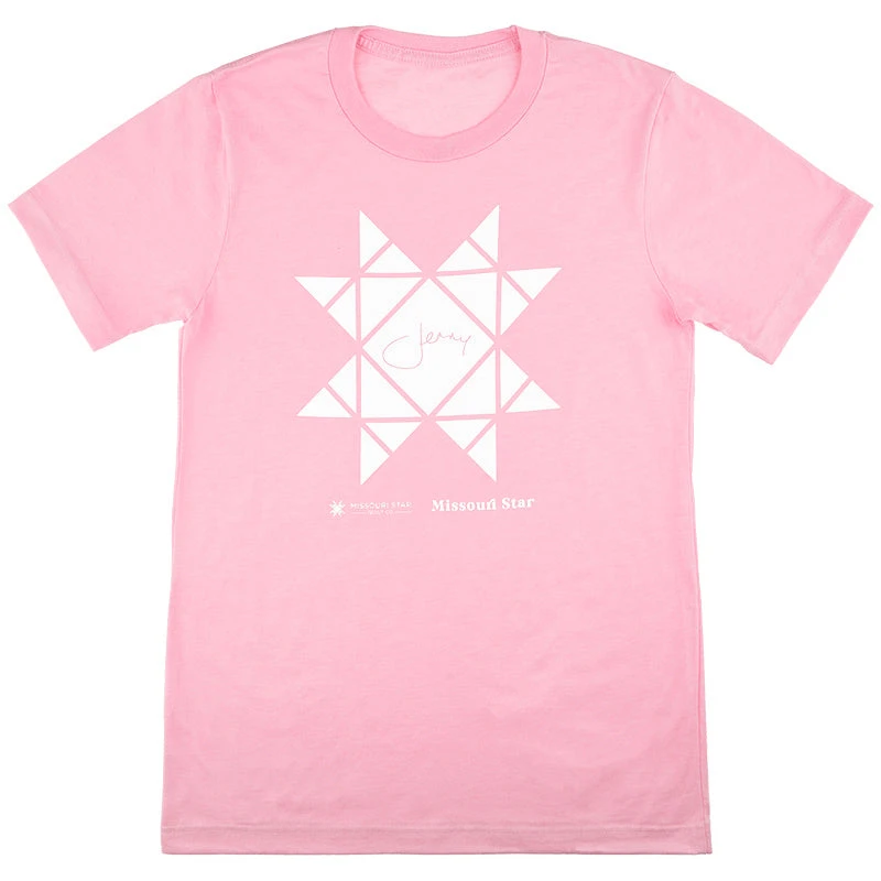Pink is definitely your color, so make sure you add this bubble gum-pink Missouri Star Quilt Block T-shirt to your wardrobe! Featuring Jenny’s signature and a beautiful white star block on the front, this comfy heather T-shirt is 1 of 4 fun 2023 designs that you can collect.