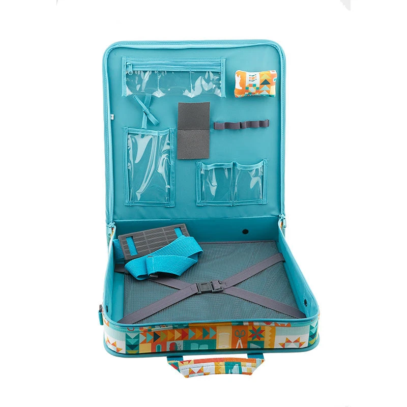 The prettiest luggage for your WIPs! Zip up your quilting supplies in this handy project case featuring 3 interior pockets and 3 extra zipper pockets for pins, bobbins, and more. With a detachable pincushion, felt needle holder, 5 elastic loops, and mesh sleeve divider with elastic strap, you can keep your quilt blocks, notions, and thread safely in place!