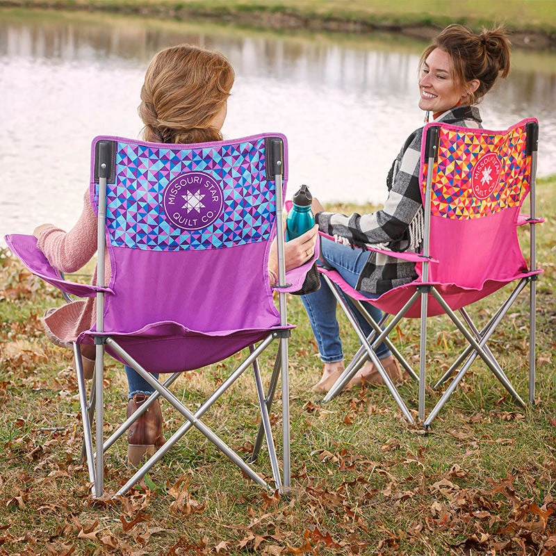 Make your glamping trip even more glamorous with the Missouri Star Quilty Glamping Chair! This pretty pink chair is like your standard camping/outdoors chair, as it folds and stores easily (bag with strap included), is made of 600D polyester.