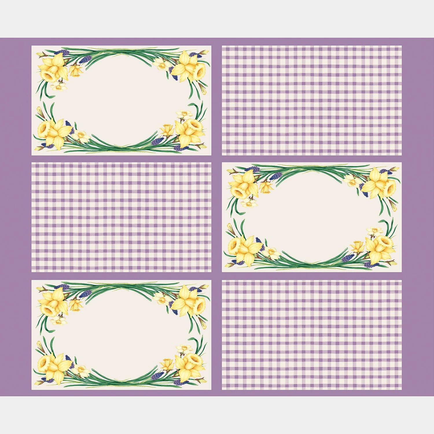 A panel of placemats for April with a daffodil theme. Pair this panel with the coordinating daffodil fabric for April. Hester & Cook for Riley Blake lends you a hand in your holiday and seasonal decorating with their collection of Monthly Placemat panels and fabric! Christmas, Thanksgiving, Halloween – no matter what kind of placemats you want to dress your table with, there’s a panel and coordinating fabric for each holiday and season.