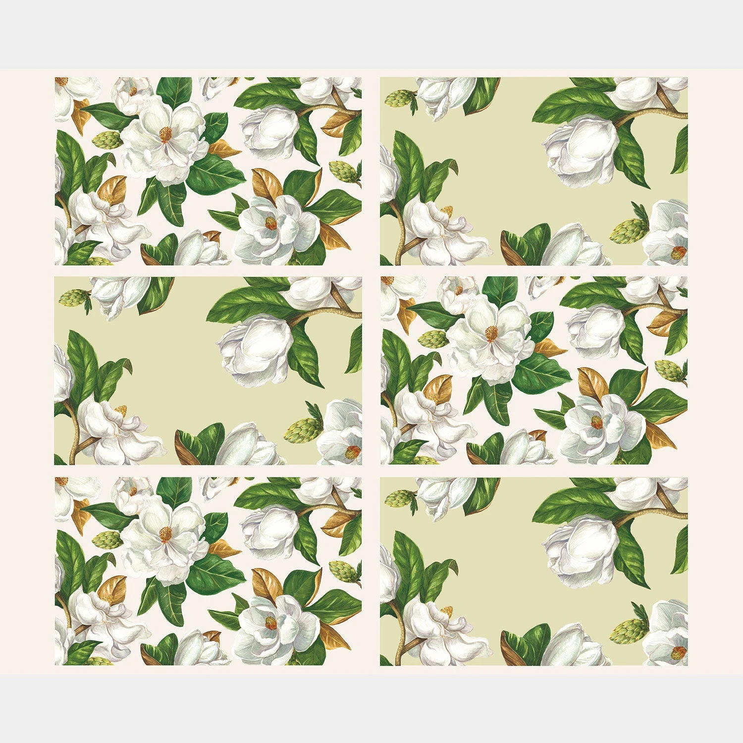 A panel of placemats for March with a magnolia theme. Pair this panel with the coordinating magnolia fabric for March. Hester & Cook for Riley Blake lends you a hand in your holiday and seasonal decorating with their collection of Monthly Placemat panels and fabric! Christmas, Thanksgiving, Halloween – no matter what kind of placemats you want to dress your table with, there’s a panel and coordinating fabric for each holiday and season.