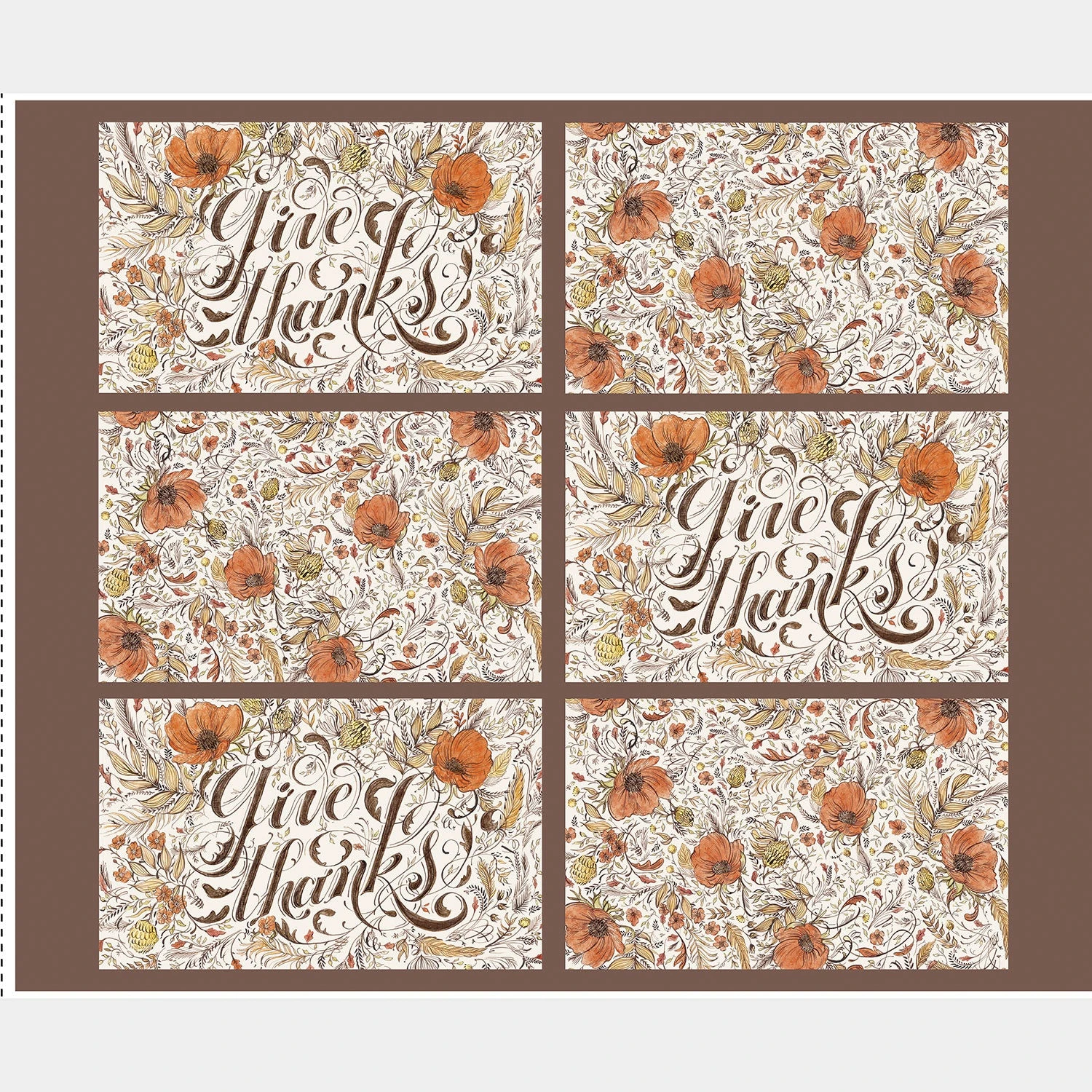 A panel of placemats for November with a Thanksgiving theme. Pair this yardage with the coordinating November fabrics. Hester & Cook for Riley Blake lends you a hand in your holiday decorating with their collection of Monthly Placemat panels and fabric! Christmas, Thanksgiving, Halloween – no matter what kind of placemats you want to dress your table with, there’s a panel and coordinating fabric for each holiday.