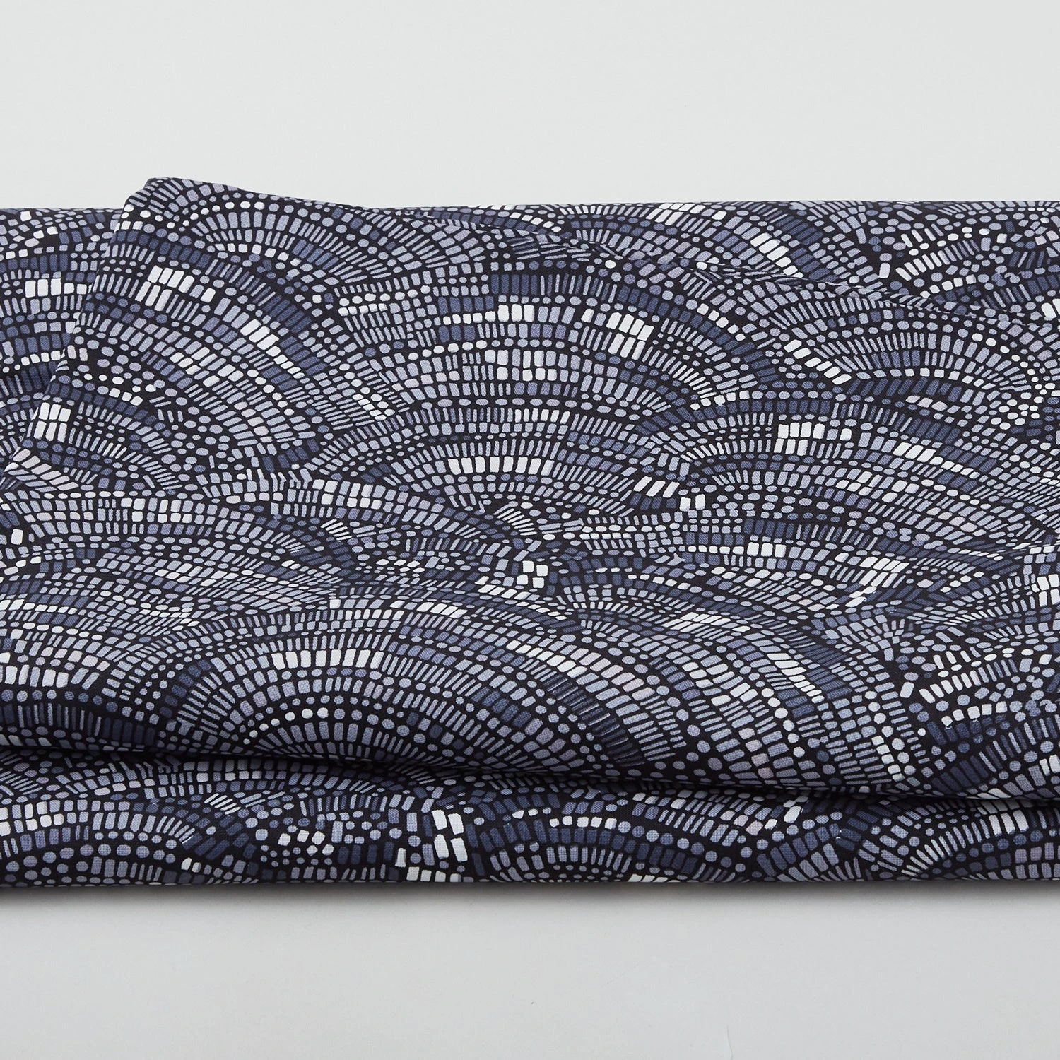 A 3-yard cut of 108”-wide backing material featuring overlapping fans in a black and gray mosaic print. Back your quilt with just one piece of this stunning mosaic fan print from Studio E. The small, irregular shapes resemble stones, and they will make your quilt rock!