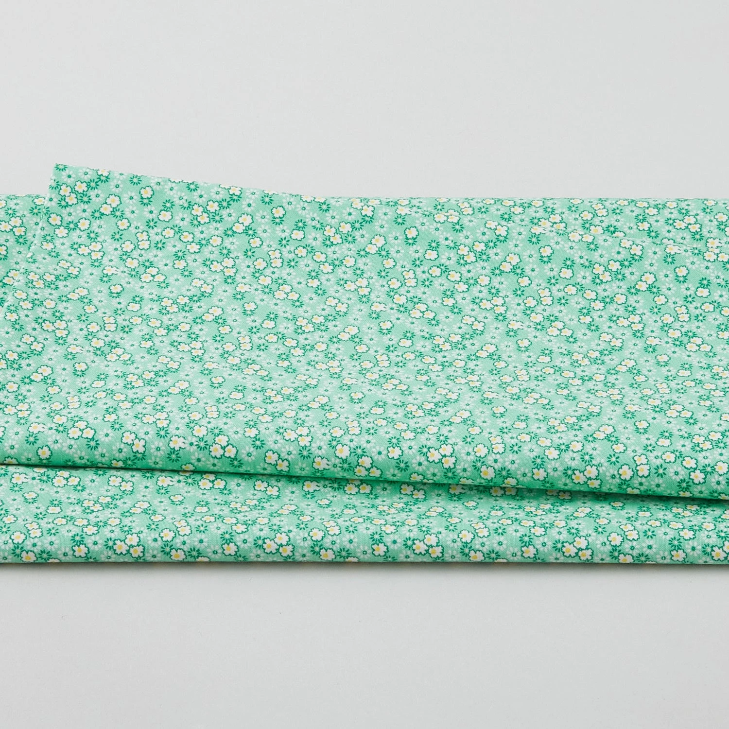 A 2-yard cut of tiny white and green flowers on a light green background. Nana Mae 6 features some of the prints we love to see most in 30s fabric: precious calico florals and adorable little characters and critters. You’ll love all the dainty and delicate flowers scattered over the pastel colors and the super cute kitties and animals. These prints and colors would be perfect for a baby quilt or project!