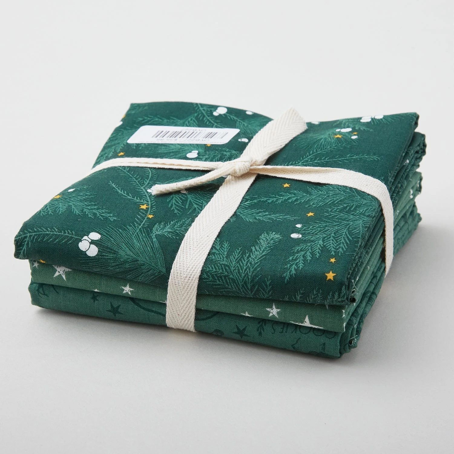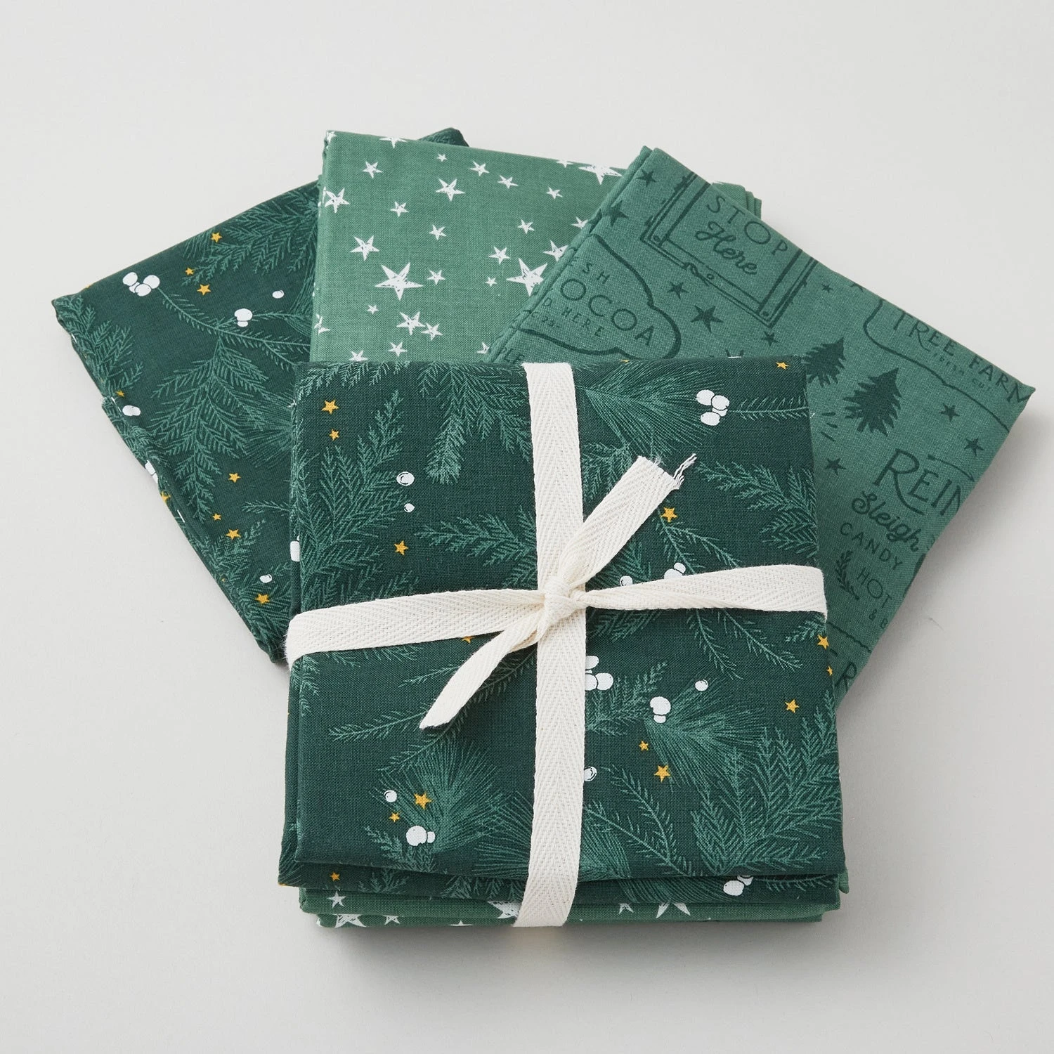Three 1-yard cuts of green Christmas prints featuring evergreens, stars, and holiday phrases. If you’re dreaming of an old-fashioned Christmas, then this collection is about to be a dream come true for you! Created by My Mind’s Eye for Riley Blake Designs, the Old Fashioned Christmas collection is exactly that–a collection of traditional, evergreen Christmas prints. Cheery Santa faces, candy canes, pine branches–what more could you want for a traditional Christmas project?