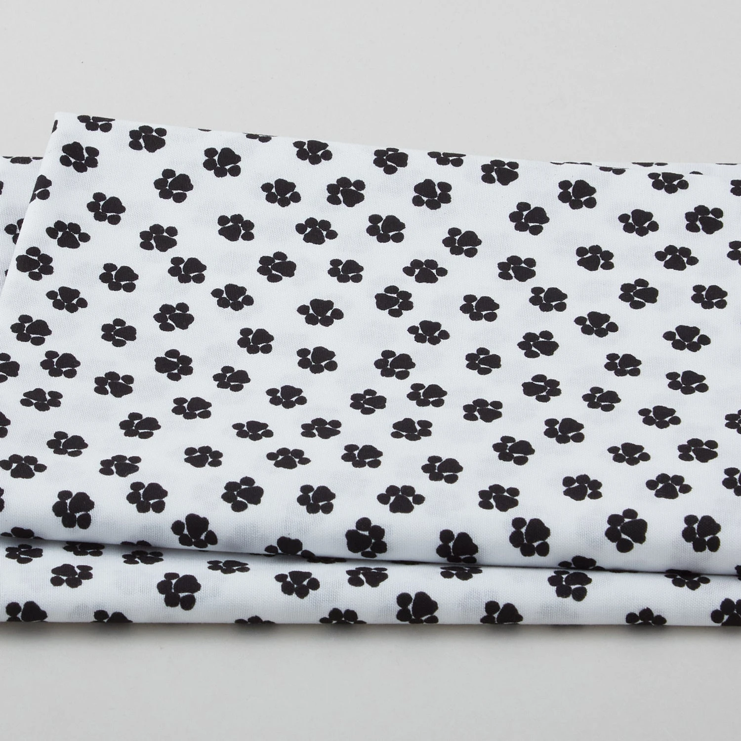 A 2-yard cut of black paw prints on a white background. Variety is the spice of life, and these 2-yard cotton cuts from Fabric Editions offer plenty of it! Prints such as pink flamingos and scattered hearts add a fun touch to any project, and the solids are great staples for your stash.