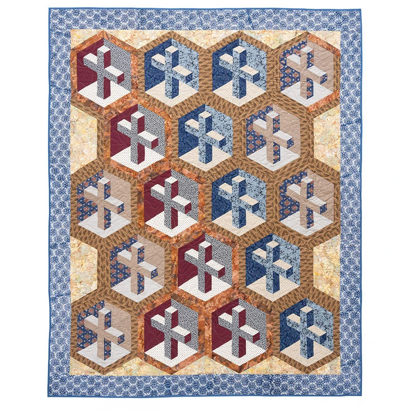 Quilts of Praise contains devotional 3D basic blocks showing crosses and churches. This book has 9 projects to create like quilts, wall hangings, and stoles perfect for special occasions or decor.