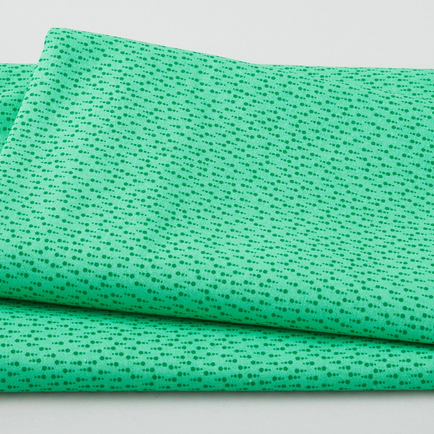 A 3-yard cut of dark green dots in rows on a green background. It’s raining cats and dots! Rows and rows of dots in a rainbow of colors line the Raindrops collection from Blank Quilting Corp. These raindrop prints are bright and sunny and right as rain!