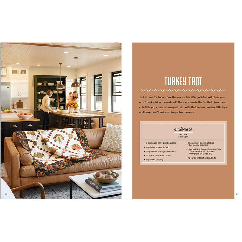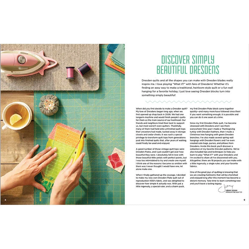 Discover all the stunning designs you can create using a Dresden template in Simply Beautiful Dresdens! Within these pages, you will find 18 quilt creations you can make at home with your versatile Dresden template. Each project has easy-to-follow instructions and variation ideas so you can make it your own. Plus, this Missouri Star book also contains tips, tricks, and interesting articles on quilting Dresdens. Learn cool hacks like how to round out the centers of your Dresdens using household items and so much more!