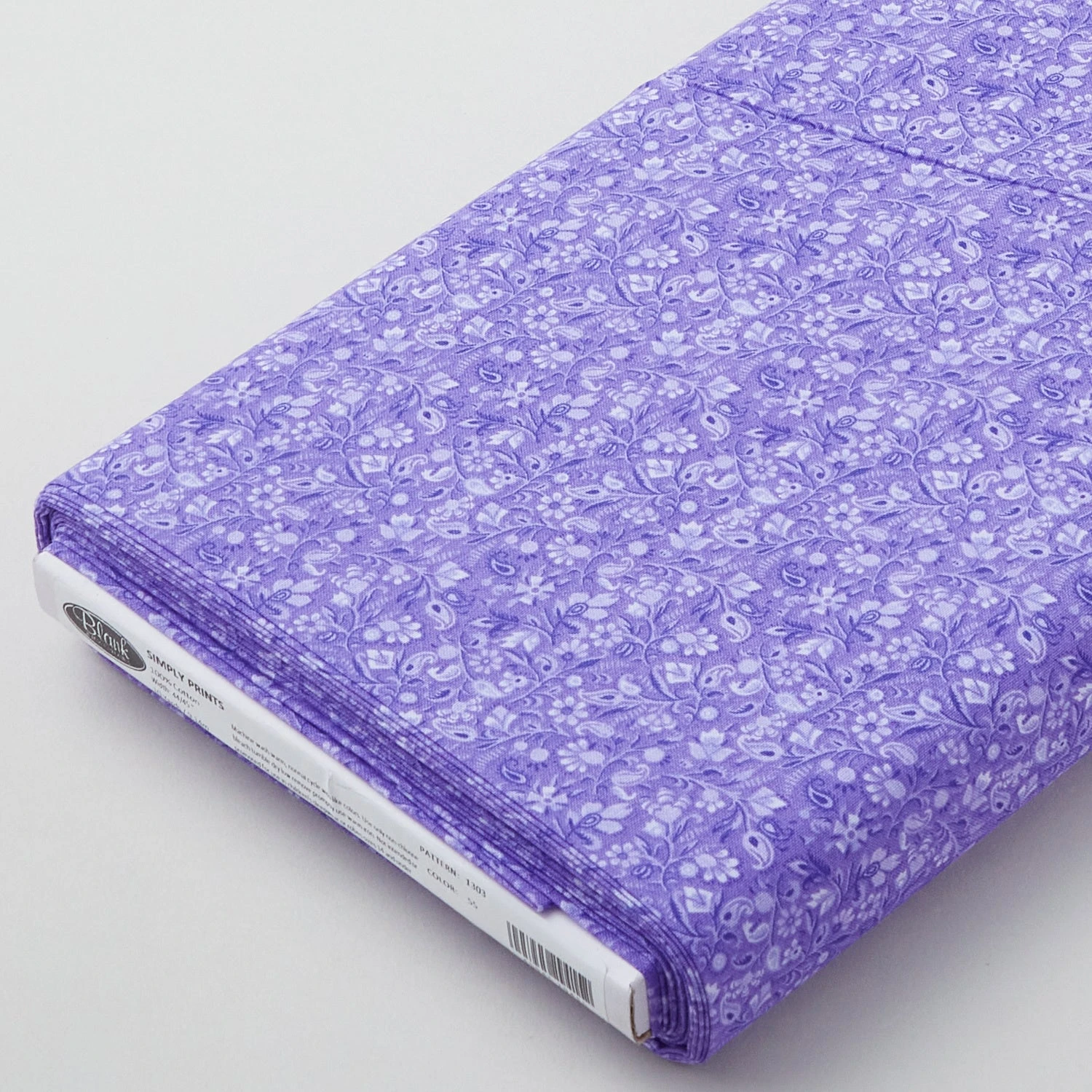 A 10-yard bolt of purple flower vines with paisley-shaped leaves a purple background. Whether you’re looking for ditsy daisies or magnificent mosaics, you’ll find them by the bolt in the Simply Prints collection from Blank Quilting Corp. These bolts of prints, which come in a wide array of colors, are perfect for pieced backings on large quilts.