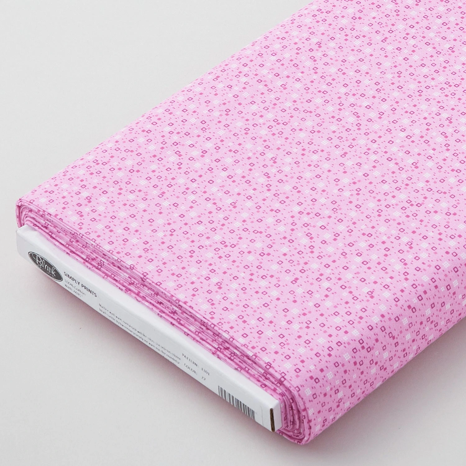 A 10-yard bolt of small pink and white squares on a pink background. Whether you’re looking for ditsy daisies or magnificent mosaics, you’ll find them by the bolt in the Simply Prints collection from Blank Quilting Corp. These bolts of prints, which come in a wide array of colors, are perfect for pieced backings on large quilts.