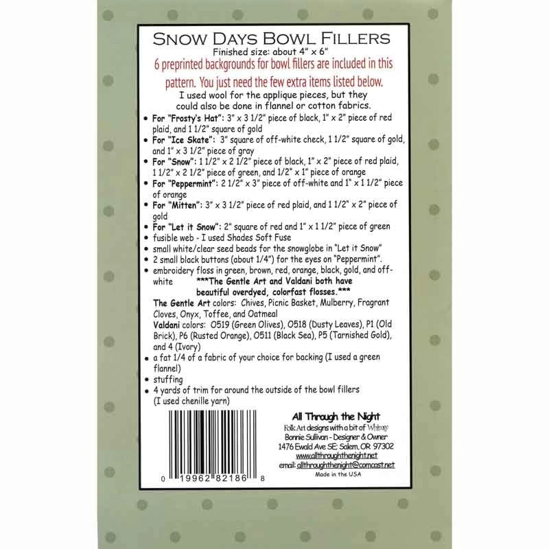 A hand project to take with you. Pattern, by Bonnie Sullivan of All Through the Night, includes instructions and a preprinted fabric panel to hand-appliqué wool, fabric or flannel fabric onto and embroider with cotton floss. No tracing required. Printed lines show where to do your stitching. Wool not included.