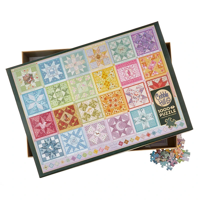 Watch the seasons shift with these themed quilt blocks! Piece together this star block jigsaw puzzle from Cobble Hill for quilting and sewing inspiration. Poster included!
