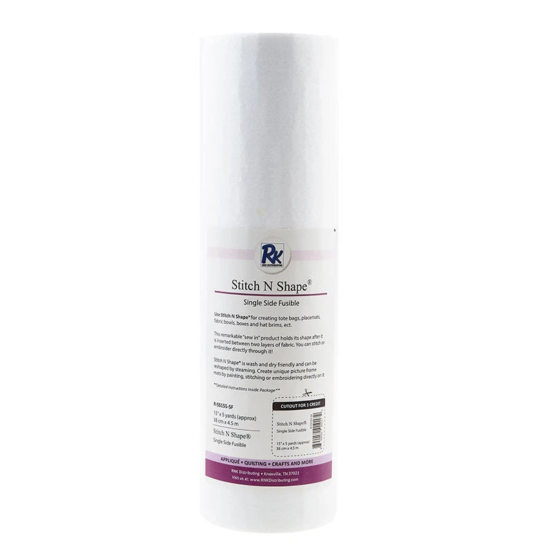 Use Stitch ‘N Shape for adding shape, form, and/or dimension to tote bags, placemats, fabric bowls/boxes, hat brims, ornaments, paper dolls, and much more! This remarkable product will hold its shape after it is inserted between two layers of fabric. You can stitch or embroider directly through it. Items constructed with Stitch N Shape® can be laundered and then reshaped by steaming.