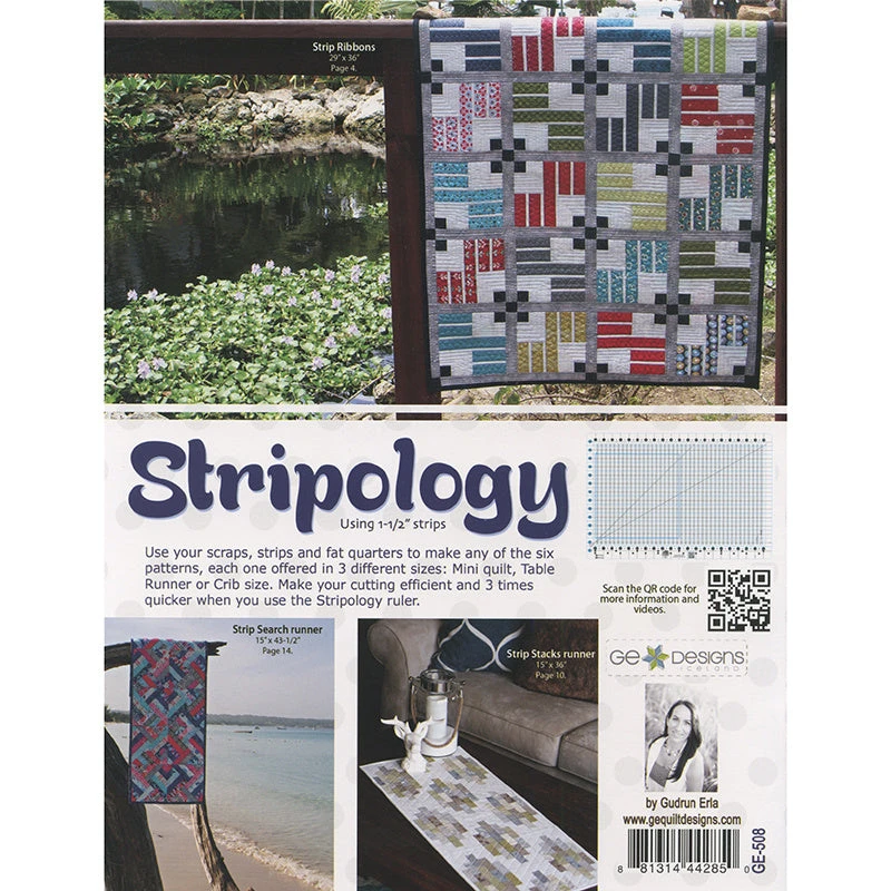 Choose from 6 strip piecing patterns made with 1 1/2″ strips and uses the popular Creative Grids Stripology XL Ruler.