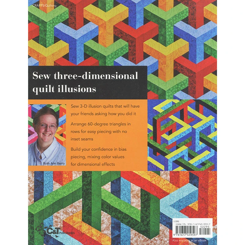 Create a stunning quilt that will have your friends asking, “How did you do that?” Believe it or not, these attention-grabbing projects come together with straight rows of simple shapes. You’ll learn how to sew 12 visually arresting quilts each in 4 colorways giving you dozens of dynamic options. Build your confidence in bias piecing, as you pair light, medium, and dark fabrics for heavenly hexes. Don’t be intimidated?just follow the easy assembly diagrams and watch your quilt come together one row at a time with no inset seams. These 3-D illusions are so impressive, you won’t know whether to keep them on the bed or hang them on the wall.
