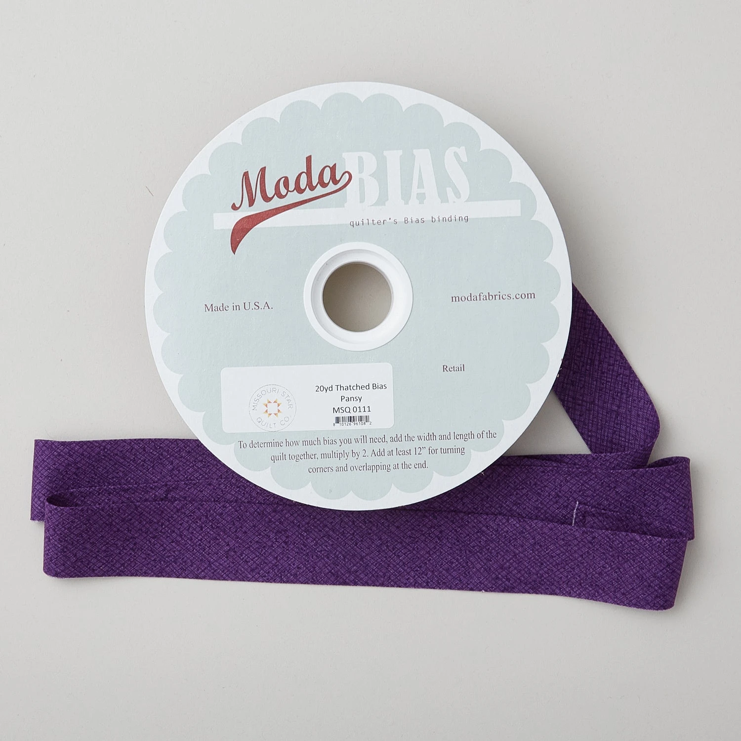 20 yards of thatched pansy bias binding. Finish your quilts faster with premade bias binding! Together Missouri Star and Moda Fabrics have created a 20 yard spool of 100% cotton Moda Bella Solid fabric. Start a bias binding stash with these 2-1/4” single fold bias bindings.