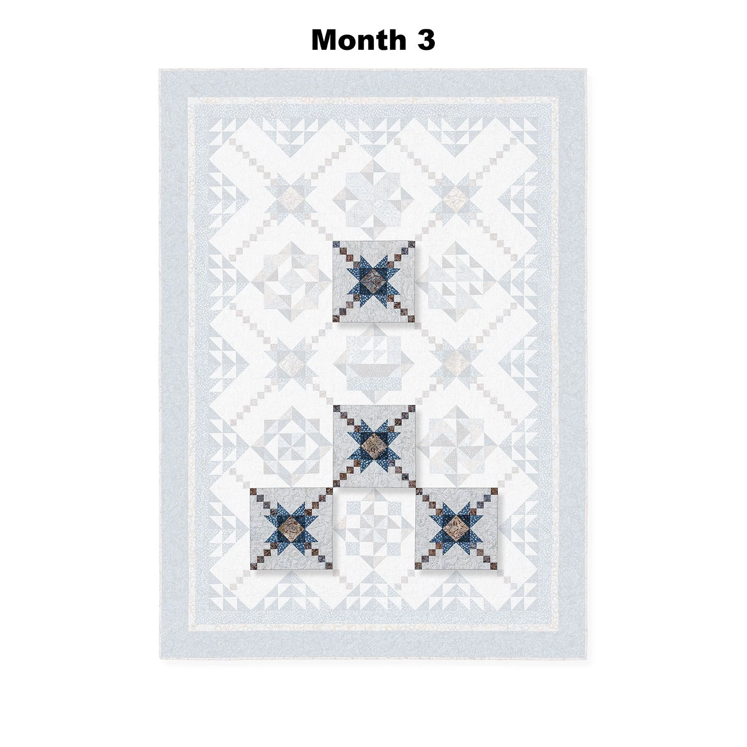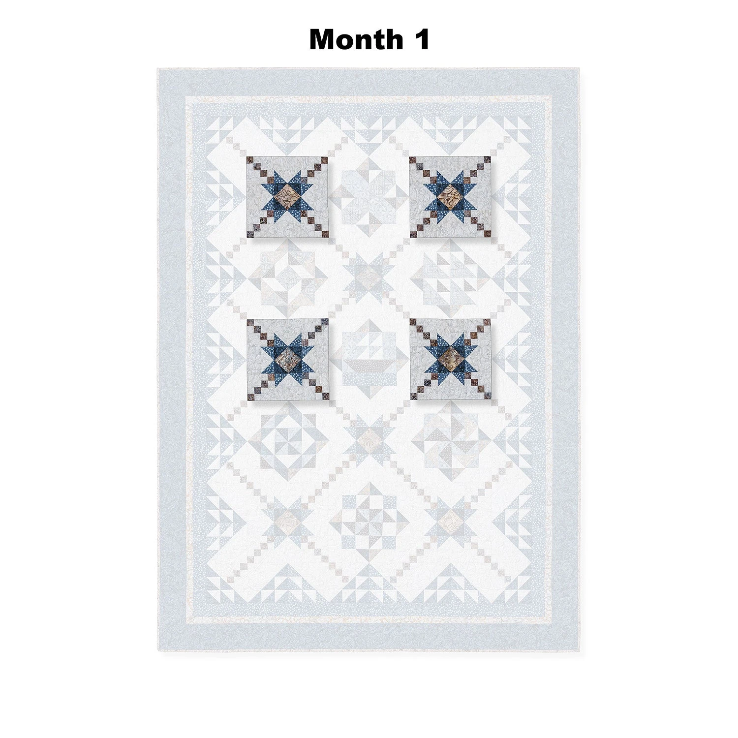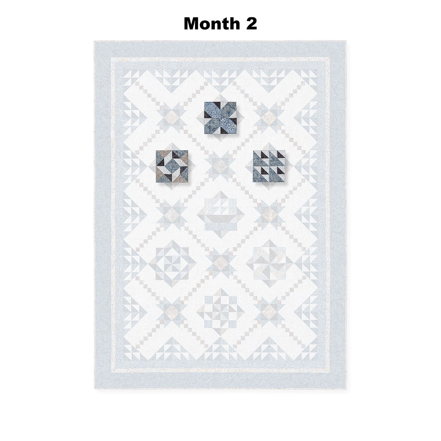 Designed by Timeless Treasures, each shipment of this 9-month-long Block of the Month program contains directions for a section of the pieced quilt and Tonga Lakeside fabrics by Timeless Treasures. Finishing instructions, border, and binding fabrics included in the last month.