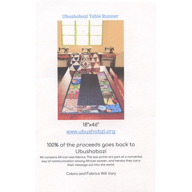 Create a beautifully unique table runner made with vibrant African wax fabrics and give back to a community in Rwanda, Africa. The Ubushobozi is a women’s cooperative that teaches young girls the skills they need to be successful and provide income for their families. Ubushobozi means power and ability. Purchasing this kit helps benefit the Ubushobozi Collective.