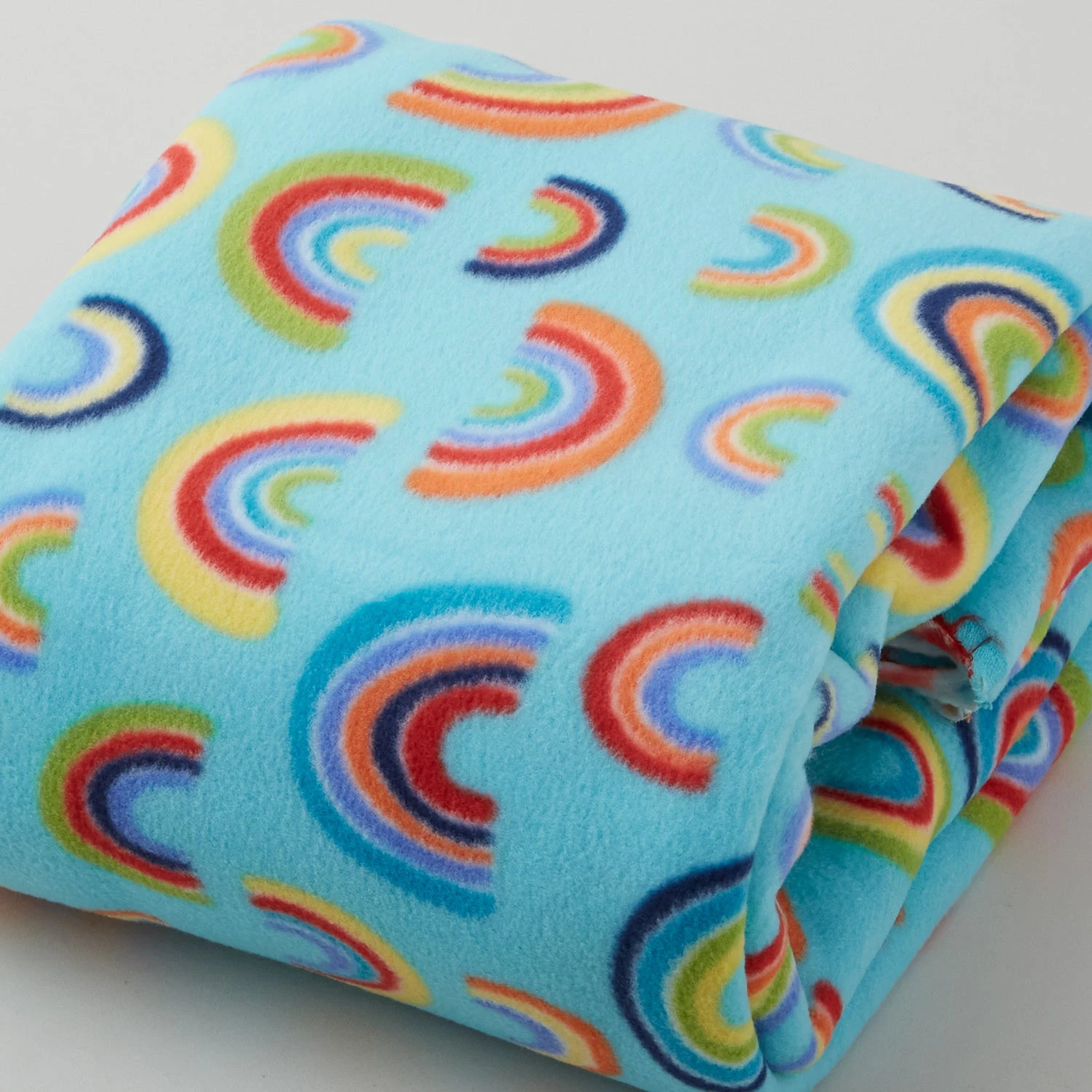 A 2-yard cut of velour fleece with multicolored rainbows on a turquoise background. When cold winds blow, warm up with WinterFleece! This soft, breathable polyester fleece comes in a wide range of solid colors and great prints, too. It features an anti-pill velour face with a brushed back. Great for apparel, accessories, blankets, pet products, and more!