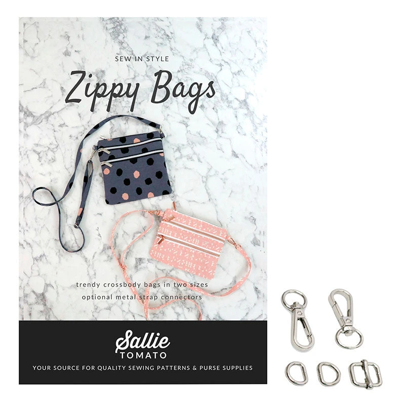 On to your next project, the Sallie Tomato Zippy Crossbody Bag! These are oh-sew-trendy crossbody bags are perfect for traveling and daily use! The fat quarter friendly pattern includes step-by-step instructions for two bag sizes and features three exterior zipper pockets and an adjustable crossbody strap.
